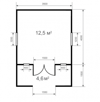 Размеры: 5,5×3,5 м. Общая площадь: 17,1 м2. Срок строительства: 5-7 дней.